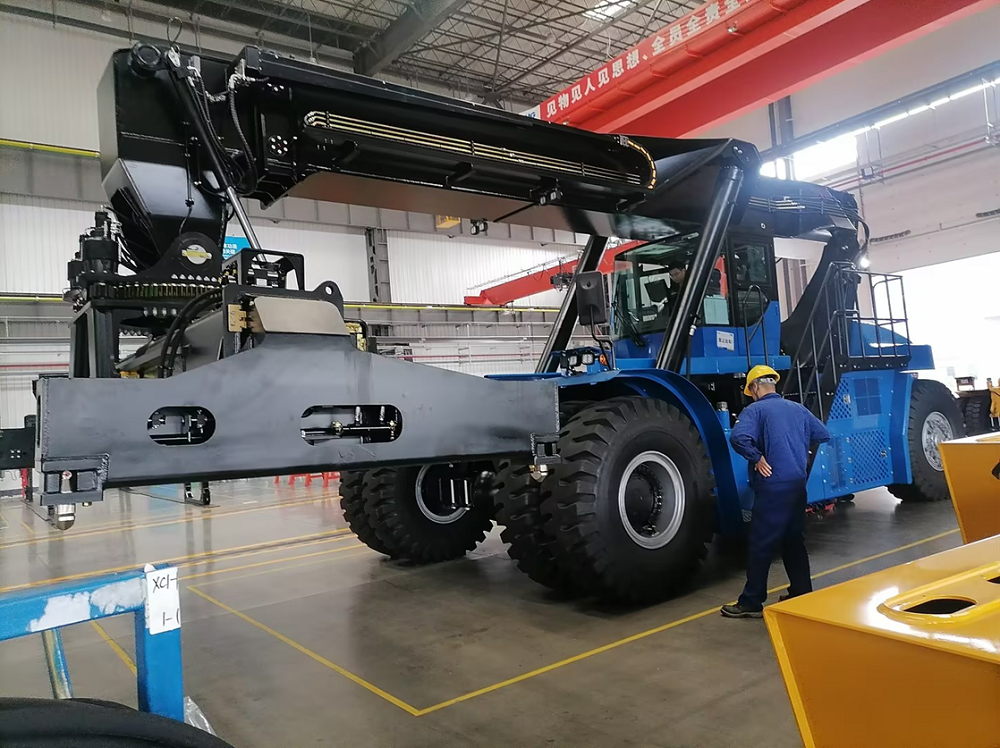 近日,玉柴增程器(YCA05190-T400发动机)配套的徐州徐工港口机械有限公司(以下简称徐工港机)XCS4531E4 电动集装箱正面吊顺利完成装车并开始整车各项调试工作,这是徐工港机首次与玉柴合作的正面吊新能源项目。
